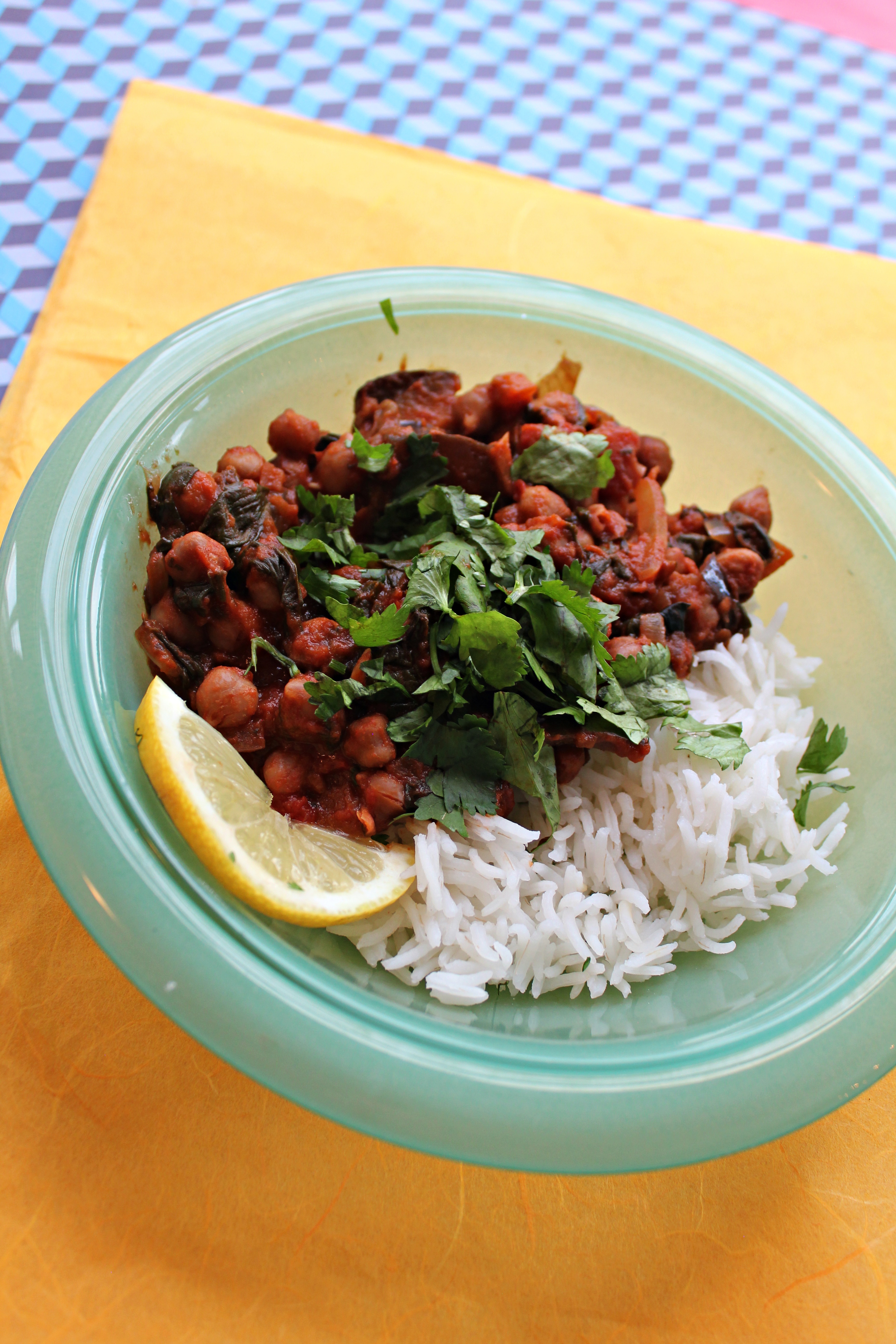 Verhit een pan met olie en bak de ui tot glazig. Laat ondertussen de kikkererwten uitlekken.